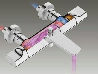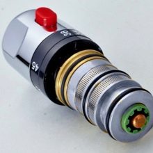 Главным элементом конструкции является чувствительный термостатический картридж или патрон. Он размещается в корпусе смесителя и реагирует на малейшие температурные «скачки». Чувствительность обусловлена использованием специальных материалов, характеризующихся способностью к расширению при смене температуры. В качестве такого материала нередко выступают биометрические пластины.