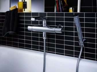 - Термостатические смесители, включающие, помимо обязательных элементов, лейку для душа, слив и переключатель. Изделие может иметь разную форму, чаще всего – трубчатую систему, оканчивающуюся переключателями.
