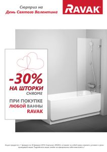 RAVAK: АКЦИЯ -30% на шторки CHROME! Казань Новость 03.02.2020