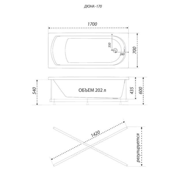 Стандартные размеры, см:170x70