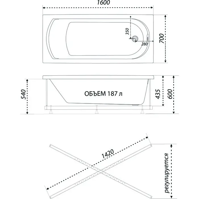 Акриловая ванна 1ACReal Дюна Щ0000046662 160x70 см на Х-каркасе белый купить