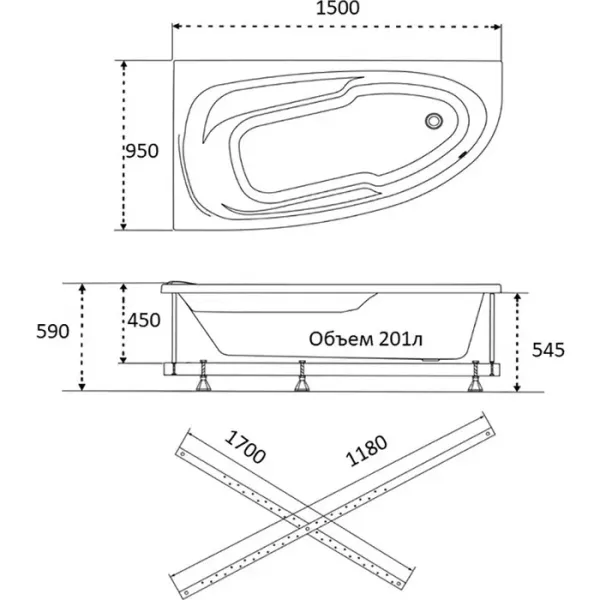 Акриловая ванна 1ACReal Мадрид Щ0000045644 правая обрезанная 150x95 см белый купить