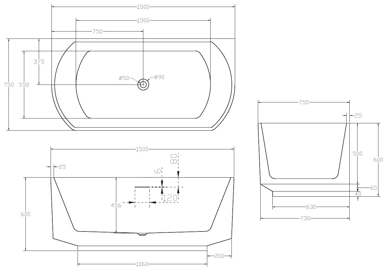 Акриловая ванна ABBER 150x75см AB9488-1.5 купить