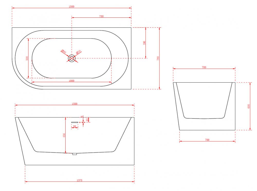 Акриловая ванна ABBER 150x80см AB9257-1.5 R купить