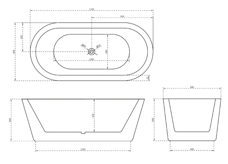 Акриловая ванна ABBER 170x80см AB9345-1.7 купить