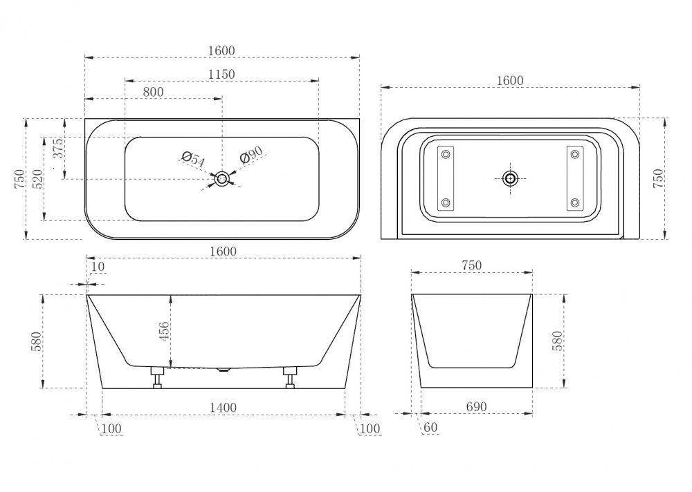 Акриловая ванна ABBER AB9223-1.6 160x75см белый купить