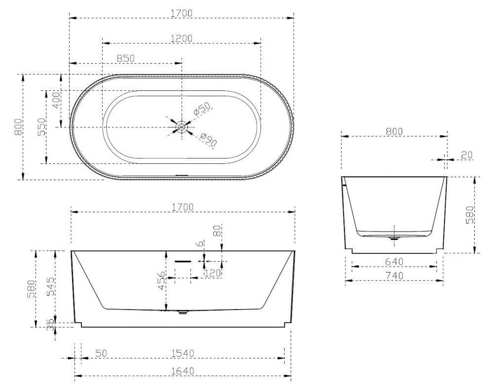 Акриловая ванна ABBER AB9325-1.7 170х80х58 купить