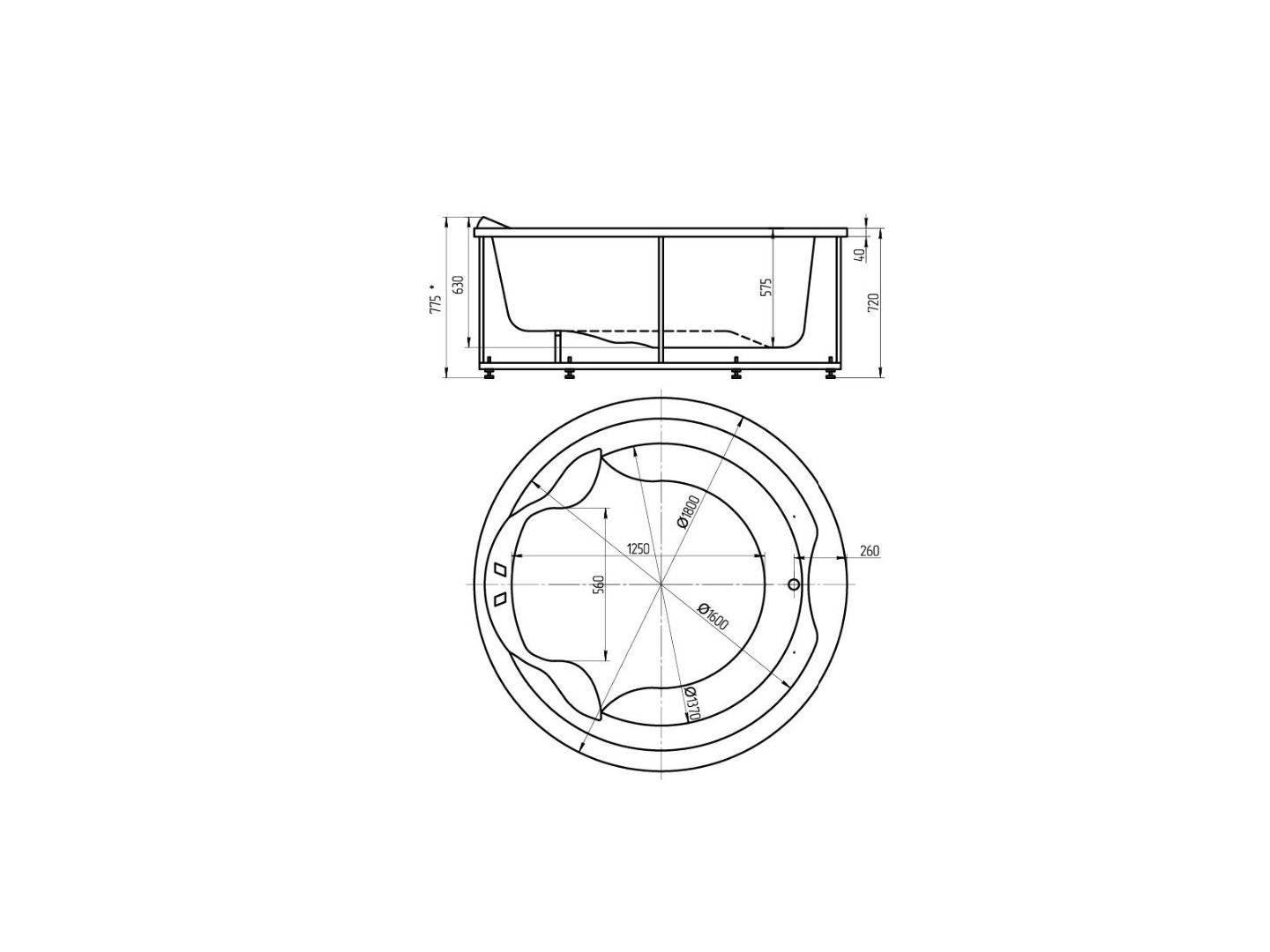 Высота, см:72–77,5Глубина, см:57,5Ориентация :ВсеФорма:КруглаяВнутр. размер дна, см:137Внутр. размер ванны, см:160Макс. емкость, л:690Вес, кг:100Диаметр:180-