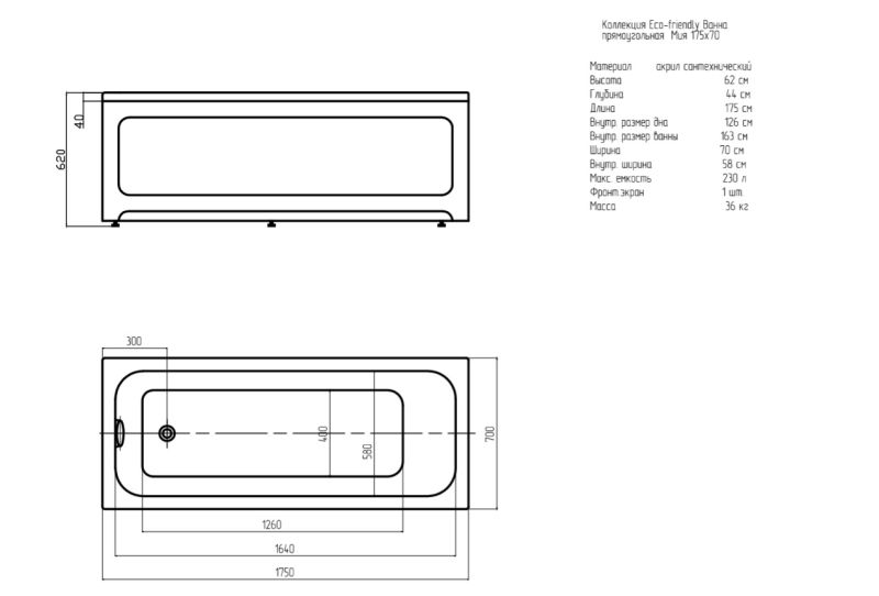 Акриловая ванна АКВАТЕК EFVA175 Мия 175x70 см Акриловая ванна АКВАТЕК EFVA175 Мия 175x70 см Казань 19000.00 {old_price} Aquatek