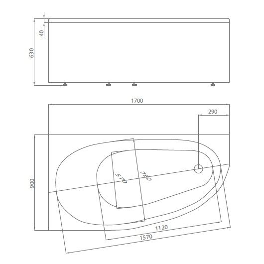 Длина, см:170Ширина, см:90Высота, см:63Глубина, см:47Ориентация :ВсеФорма:АсимметричнаяВнутр. размер дна, см:112Внутр. размер ванны, см:157Внутренняя ширина, см:78Макс. емкость, л:290Вес, кг:45