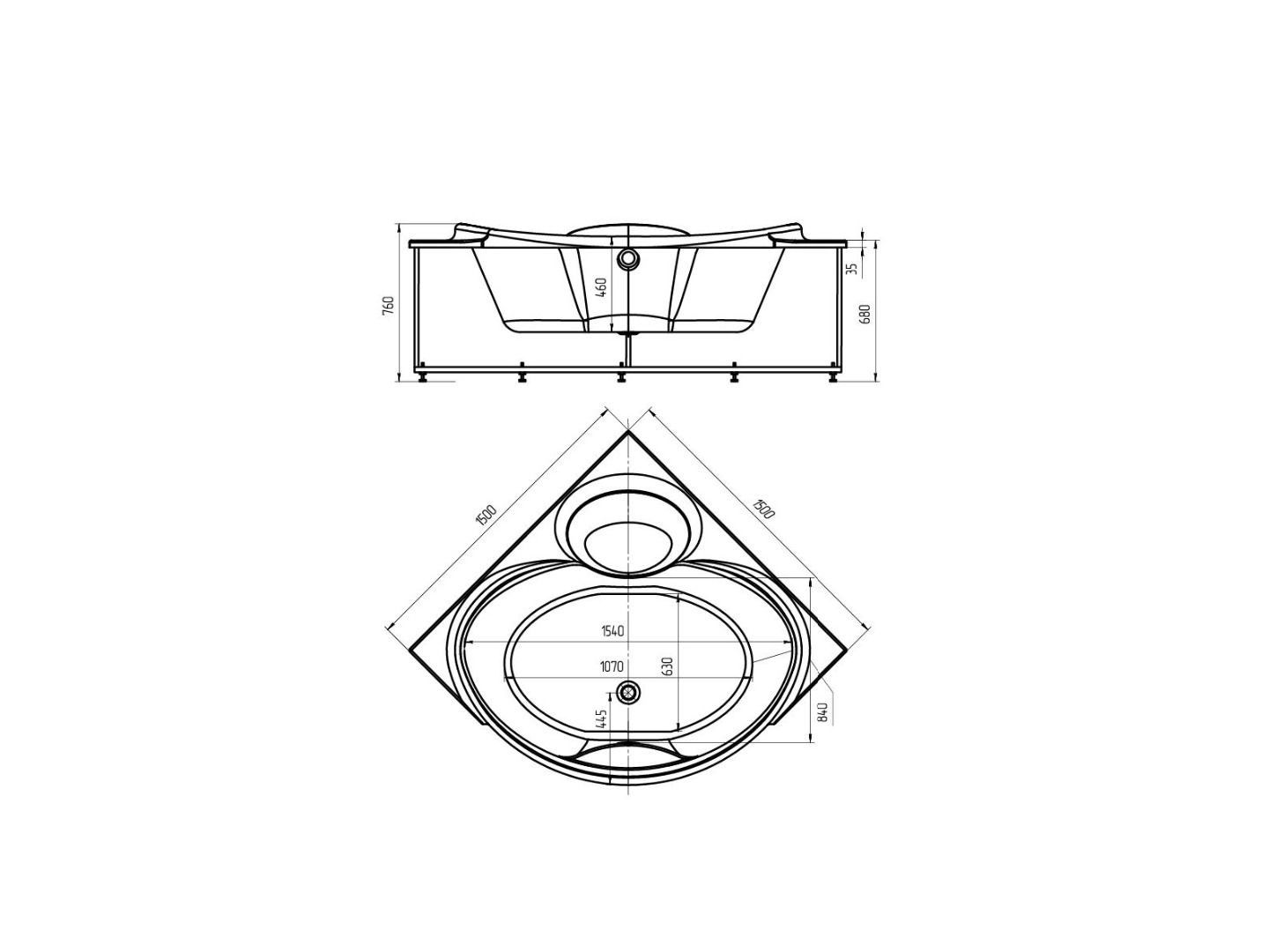 Длина, см:150Ширина, см:150Высота, см:68Глубина, см:46Форма:УгловаяВнутр. размер дна, см:107Внутр. размер ванны, см:154Внутренняя ширина, см:84Макс. емкость, л:310Вес, кг:65