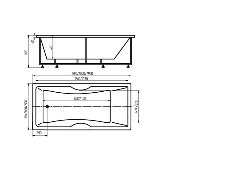 - Состав комплекта: Ванна, каркас, Слив-перелив