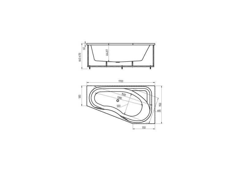 Длина, см:170Ширина, см:95Высота, см:64–67Глубина, см:46Форма:АсимметричнаяВнутр. размер дна, см:128Внутр. размер ванны, см:150Внутренняя ширина, см:68Макс. емкость, л:215Вес, кг:45