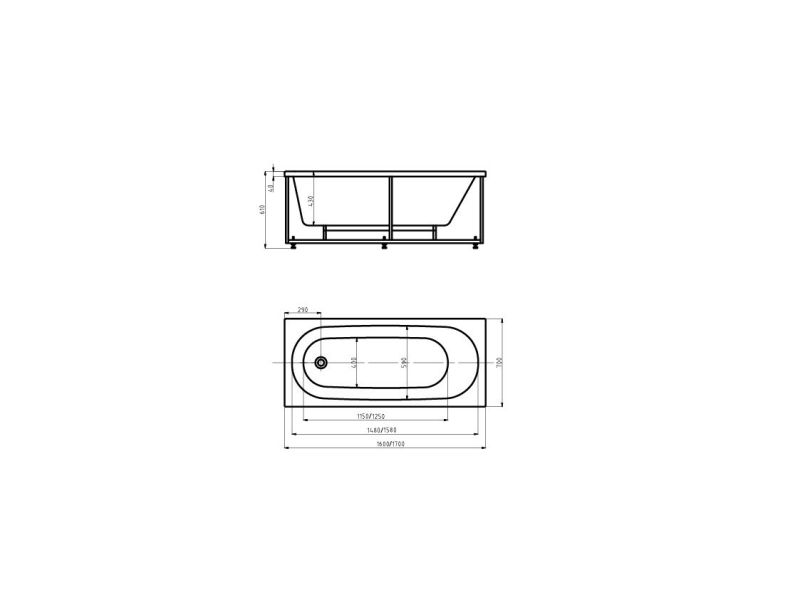 Длина, см:160Ширина, см:70Высота, см:61Глубина, см:43Форма:ПрямоугольнаяВнутр. размер дна, см:115Внутр. размер ванны, см:148Внутренняя ширина, см:59Макс. емкость, л:195-