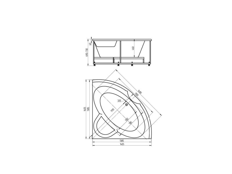 - Состав комплекта: Ванна, каркас, Слив-перелив