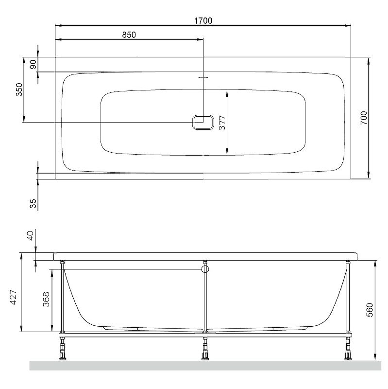 Стандартные размеры, см:170x70