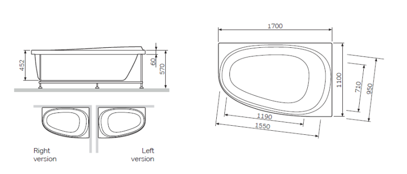 W80A-170L110W-A Like, ванна акриловая 170х110 см, левосторонняяДАННЫЕ ОБ ИЗДЕЛИИ:Ширина изделия(мм) 1700
