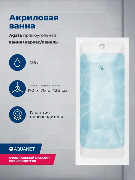Акриловая ванна Aquanet Agata 365869 170x70 см с каркасом и фронтальной панелью Акриловая ванна Aquanet Agata 365869 170x70 см с каркасом и фронтальной панелью Казань 19072.08 26489.00 AQUANET