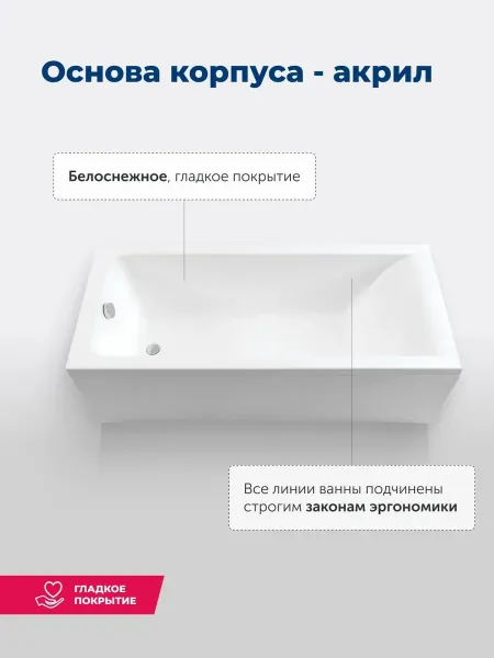 Акриловая ванна Aquanet создана с учетом растущего спроса на ванны простой прямоугольной формы в популярных размерах. Это модель с прямыми бортами и пологой спинкой, где соблюден идеальный угол для комфортного нахождения в ванне. Спинка плавно перетекает в бортик, поэтому релакс гарантирован даже без использования подголовника. Все линии ванны подчинены строгим законам эргономики. Чаша в этой ванне устроена таким образом, что для обозначенных размеров в ней достигнут максимально возможный внутренний объем, и это при комфортной глубине от слива ванны до борта. Ванна рассчитана на нагрузку свыше 300 кг, так что даже крепкий мужчина сможет без опаски находиться в ней. Двойной слой армирования обеспечивает надежность чаши, а закладные из МДФ-плит в местах наибольшей нагрузки усиливают эффект.