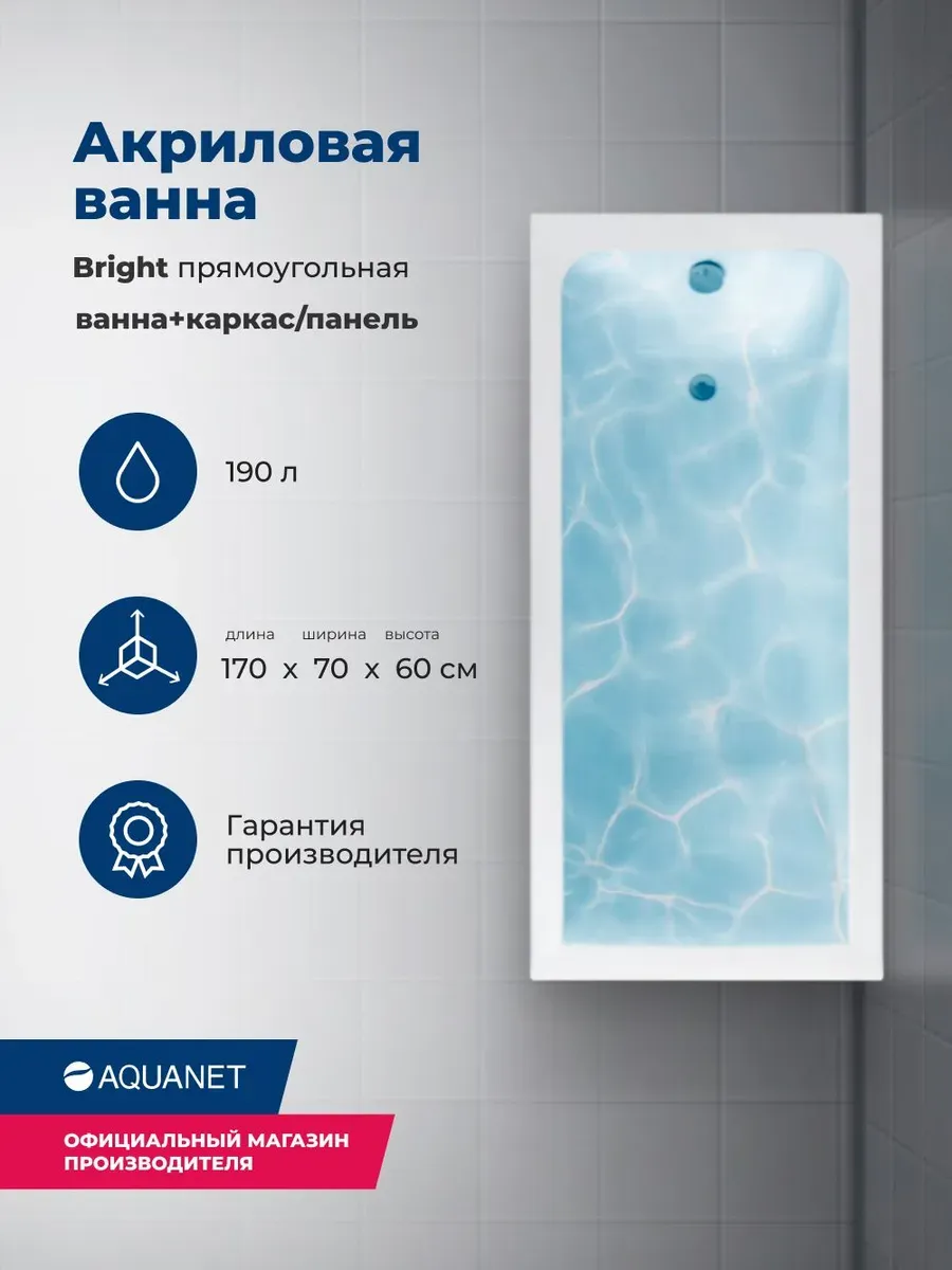 Акриловая ванна Aquanet Bright 347138 170x70 см с каркасом и фронтальной панелью Акриловая ванна Aquanet Bright 347138 170x70 см с каркасом и фронтальной панелью Казань 21174.48 29409.00 AQUANET