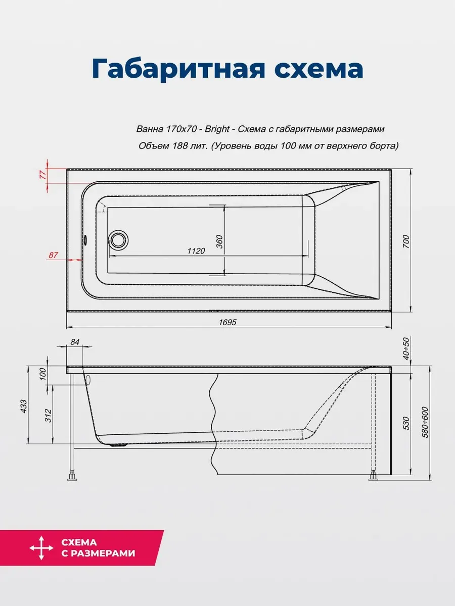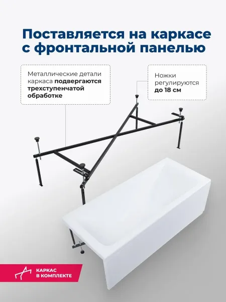 Акриловая ванна Aquanet Bright 347138 170x70 см с каркасом и фронтальной панелью купить