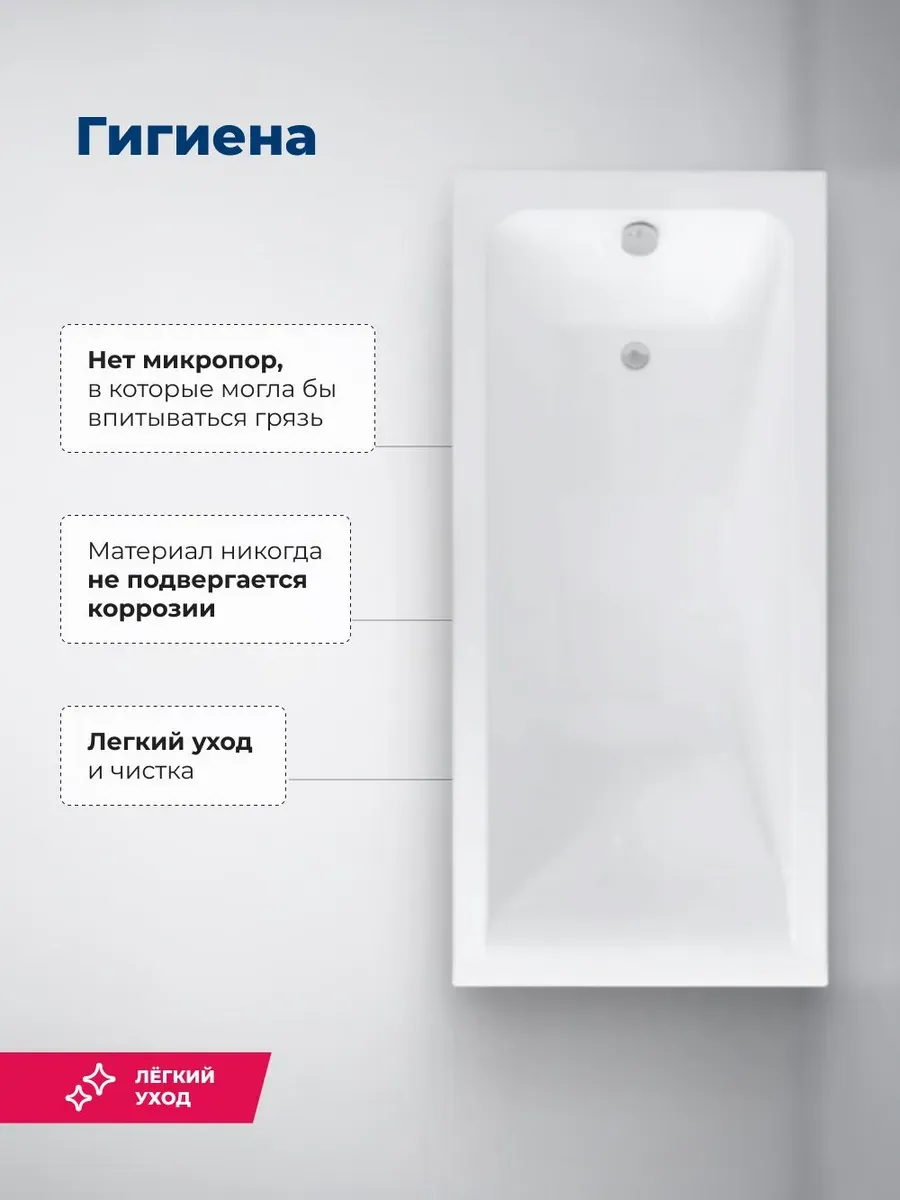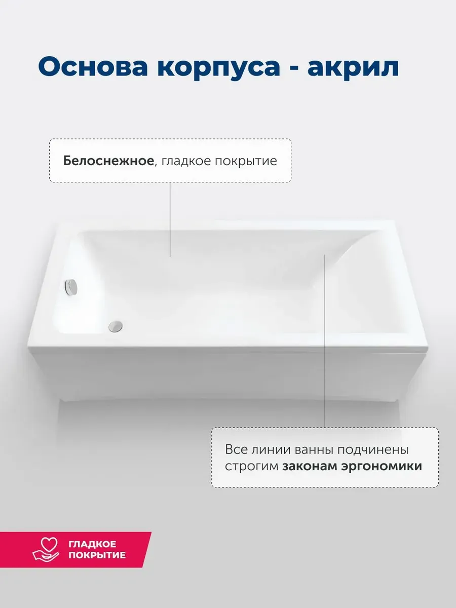 Акриловая ванна Aquanet создана с учетом растущего спроса на ванны простой прямоугольной формы в популярных размерах. Это модель с прямыми бортами и пологой спинкой, где соблюден идеальный угол для комфортного нахождения в ванне. Спинка плавно перетекает в бортик, поэтому релакс гарантирован даже без использования подголовника. Все линии ванны подчинены строгим законам эргономики. Чаша в этой ванне устроена таким образом, что для обозначенных размеров в ней достигнут максимально возможный внутренний объем, и это при комфортной глубине от слива ванны до борта. Ванна рассчитана на нагрузку свыше 300 кг, так что даже крепкий мужчина сможет без опаски находиться в ней. Двойной слой армирования обеспечивает надежность чаши, а закладные из МДФ-плит в местах наибольшей нагрузки усиливают эффект.