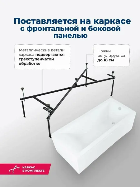 Акриловая ванна Aquanet Bright 347873 180x80 см с каркасом с боковой и фронтальной панелями купить