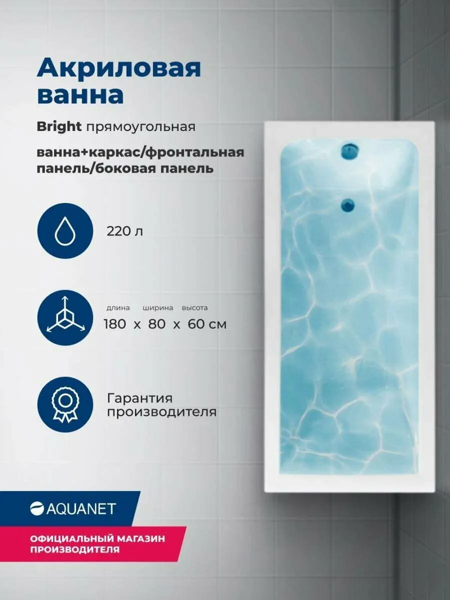 Акриловая ванна Aquanet Bright 347873 180x80 см с каркасом с боковой и фронтальной панелями Акриловая ванна Aquanet Bright 347873 180x80 см с каркасом с боковой и фронтальной панелями Казань 27568.08 38289.00 AQUANET