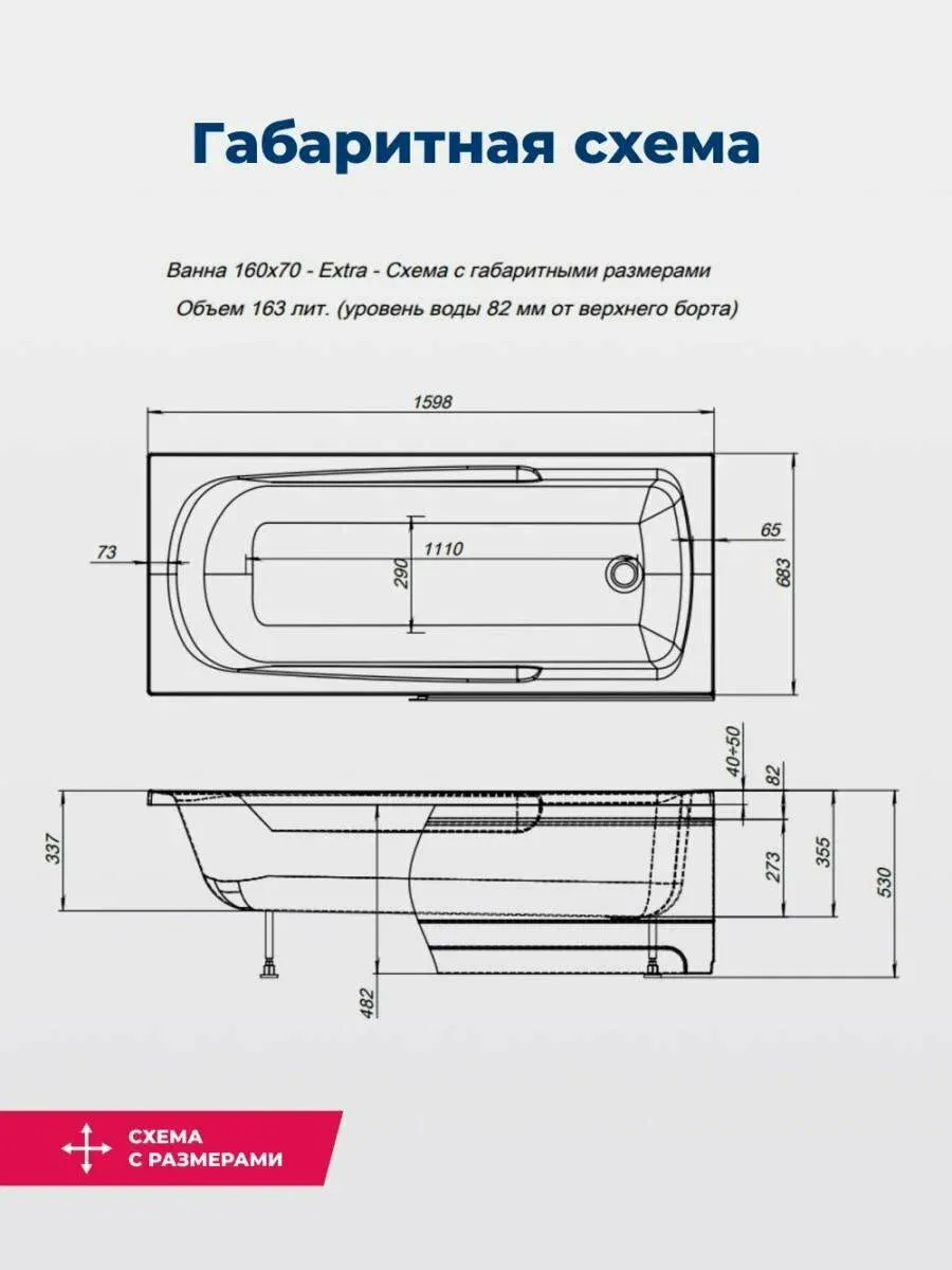 Акриловая ванна Aquanet Extra 347147 160x70 см с каркасом и фронтальной панелью купить