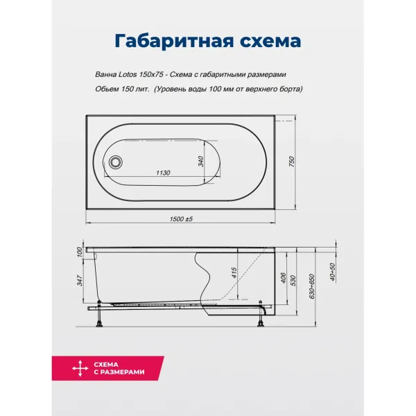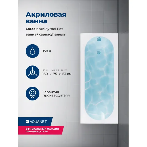 Акриловая ванна Aquanet Lotos 347156 150x75 см с каркасом и фронтальной панелью купить