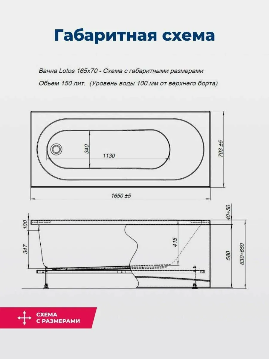 Акриловая ванна Aquanet Lotos 347157 165x70 см с каркасом и фронтальной панелью купить