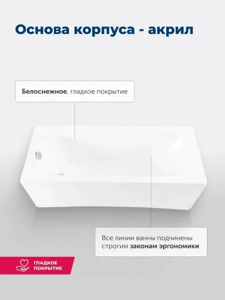 Овальная чаша со стандартным сливом дополнена расположенной под углом спинкой, переходящей в прямые широкие бортики. Выверенная до мелочей эргономика обеспечивает комфортное принятие водных процедур, позволяет держать под рукой необходимые гигиенические принадлежности. Устойчивость придает прочный металлический каркас, оптимальную высоту которого можно подобрать за счет регулируемых ножек.