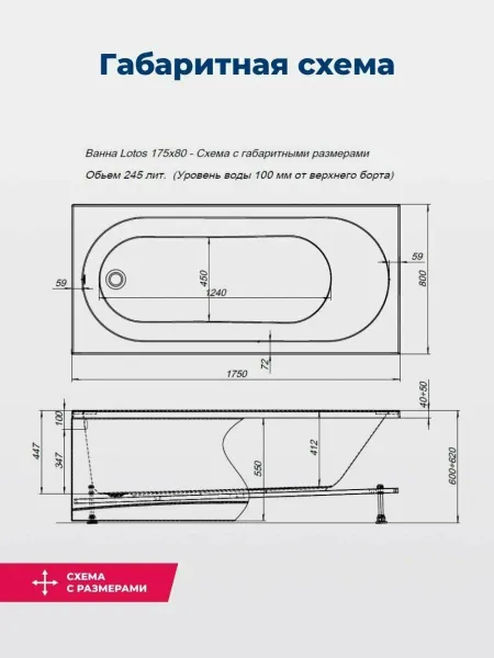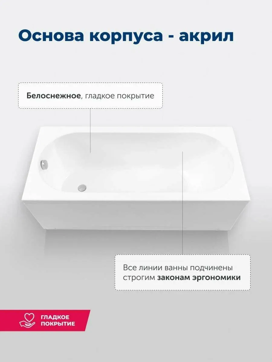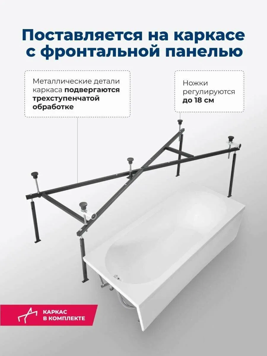Акриловая ванна Aquanet Lotos 347160 175x80 см с каркасом и фронтальной панелью купить