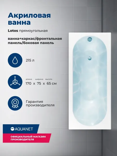 Акриловая ванна Aquanet Lotos 347883 170x75 см с каркасом с боковой и фронтальной панелями Акриловая ванна Aquanet Lotos 347883 170x75 см с каркасом с боковой и фронтальной панелями Казань 25502.40 35420.00 AQUANET