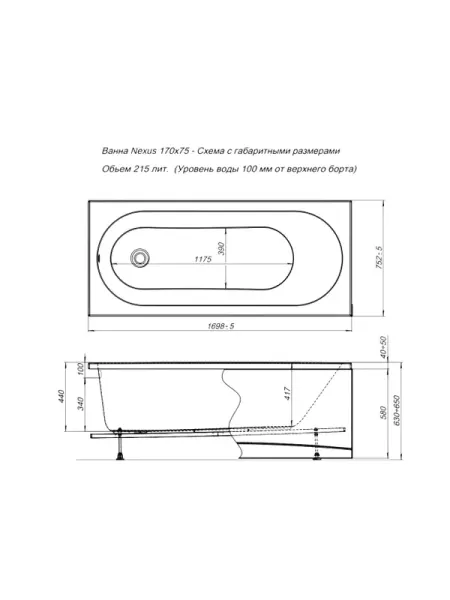 Акриловая ванна Aquanet Nexus 362567 170x75 см с каркасом купить