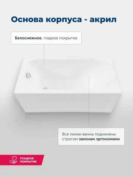 Прямоугольная акриловая ванна Nord подойдет не только ценителям классических форм и решений, но также тем, чьи ванные комнаты имеют небольшую площадь. Простая по форме, эта ванна, однако, имеет все необходимое для комфортного использования: эргономичное строение с рассчитанным углом наклона задней стенки позволит удобно расположиться даже человеку высокого роста, специальный выступ для подголовника обеспечит удержание головы сидящего над поверхностью воды, а компактные площадки по углам ванны предназначены для размещения банных принадлежностей. Особые свойства акрила делают его идеальным материалом для изготовления ванн: он прочен, прост в уходе, непроницаем для бактерий, легко ремонтируется. Еще одно важное преимущество акриловой ванны заключается в ее теплоемкости: вода здесь намного дольше остается горячей.