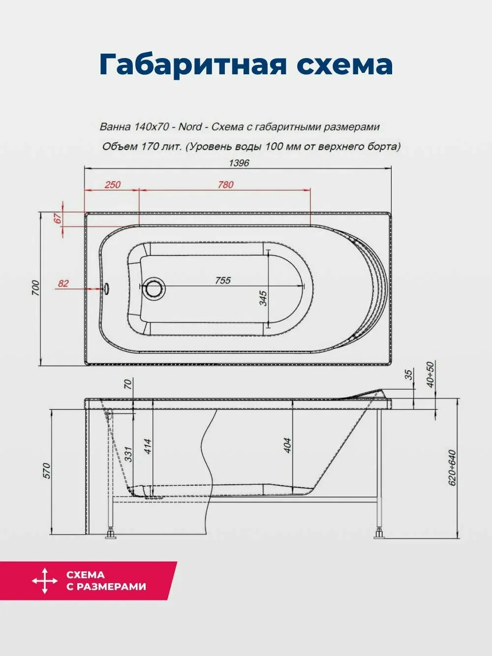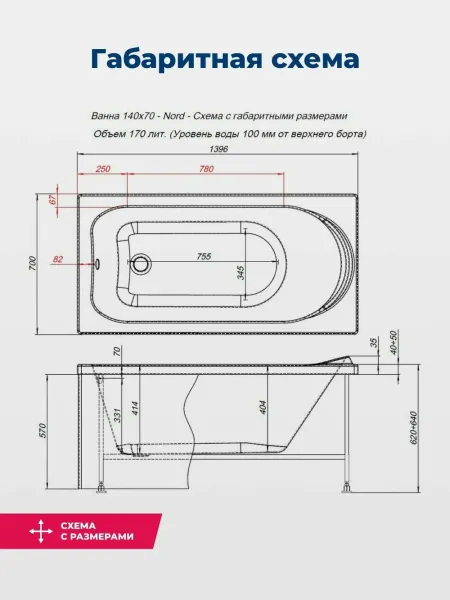 Акриловая ванна Aquanet Nord 347884 140x70 см с каркасом с боковой и фронтальной панелями купить