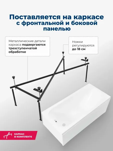 Акриловая ванна Aquanet Nord 347886 160x70 см с каркасом с боковой и фронтальной панелями купить