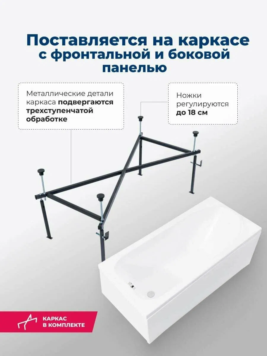 Акриловая ванна Aquanet Nord 347887 170x70 см с каркасом с боковой и фронтальной панелями купить