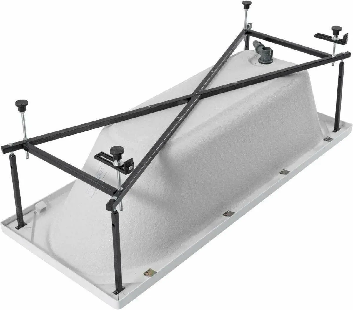 Ванна уже установлена на жесткий сварной каркас из металлического профиля. Металлические детали каркаса подвергаются трехступенчатой обработке, когда сначала профильная труба проходит абразивную зачистку на специальном станке, после чего готовые детали обрабатывают каустической содой, и, просушив, покрывают с помощью электростатического распылителя молотковой краской по металлу. Это гарантирует равномерность окрашивания и стойкость покрытия.