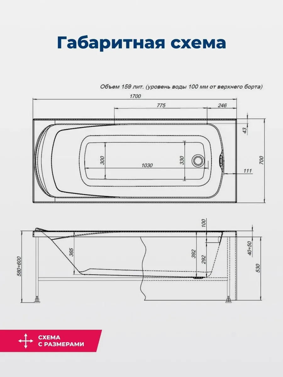Акриловая ванна Aquanet Roma 347890 170x70 см с каркасом с боковой и фронтальной панелями купить
