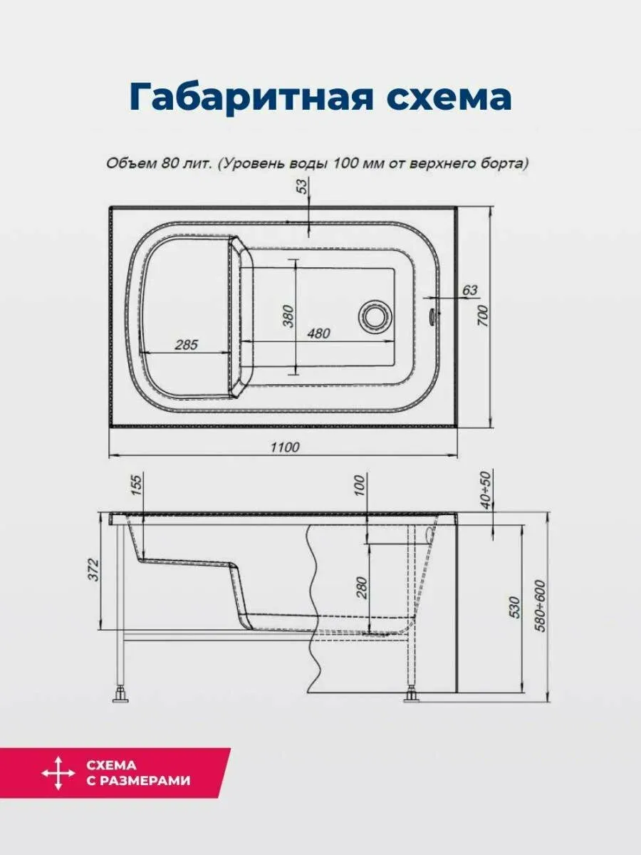 Акриловая ванна Aquanet Seed 110x70 - суперкомпактная модель, которая поместится даже в самом скромном по размерам помещении. В ширину она 70 см, а вот длину имеет необычно маленькую – всего 110 см. Принимать ванну взрослому человеку в ней можно только сидя, поэтому для удобства в ванне предусмотрено сидение. Впрочем, даже в таком положении при глубине 372 мм от слива ванны до борта в нее можно погрузиться всем телом. В ванну входит 80 литров воды. Маленькая ванна Seed по качеству не уступает своим более габаритным собратьям. Она сформована из сантехнического акрила европейского производства, покрыта для прочности двойным слоем стеклоровинга с установкой в местах наибольшей нагрузки закладных из МДФ-плиты. У нее широкие борта, которые подойдут для установки каскадного смесителя или которые можно использовать в качестве полочки для гигиенических средств. А поверхность чаши белоснежная и глянцевая, приятная на ощупь.