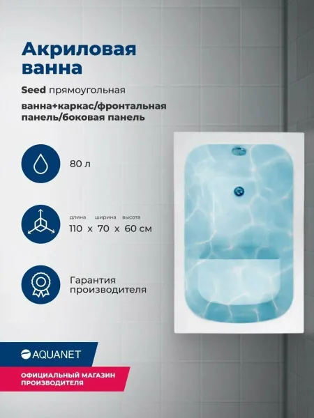 Акриловая ванна Aquanet Seed 347892 110x70 см с сиденьем с каркасом с фронтальной и боковой панелями купить