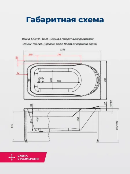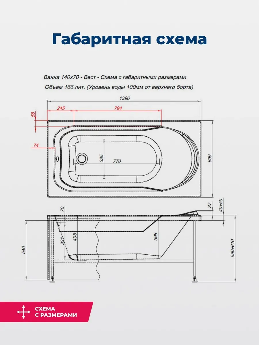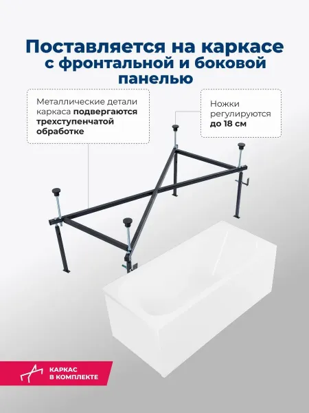 Акриловая ванна Aquanet West 347899 140x70 см с каркасом с боковой и фронтальной панелями купить