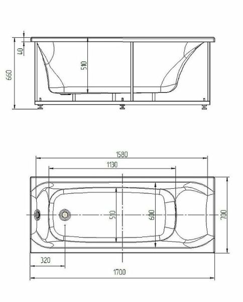 - Внутр. размер ванны 138 см