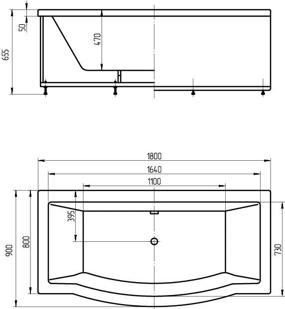 - Ванна устанавливается на каркас, который поставляется в комплекте