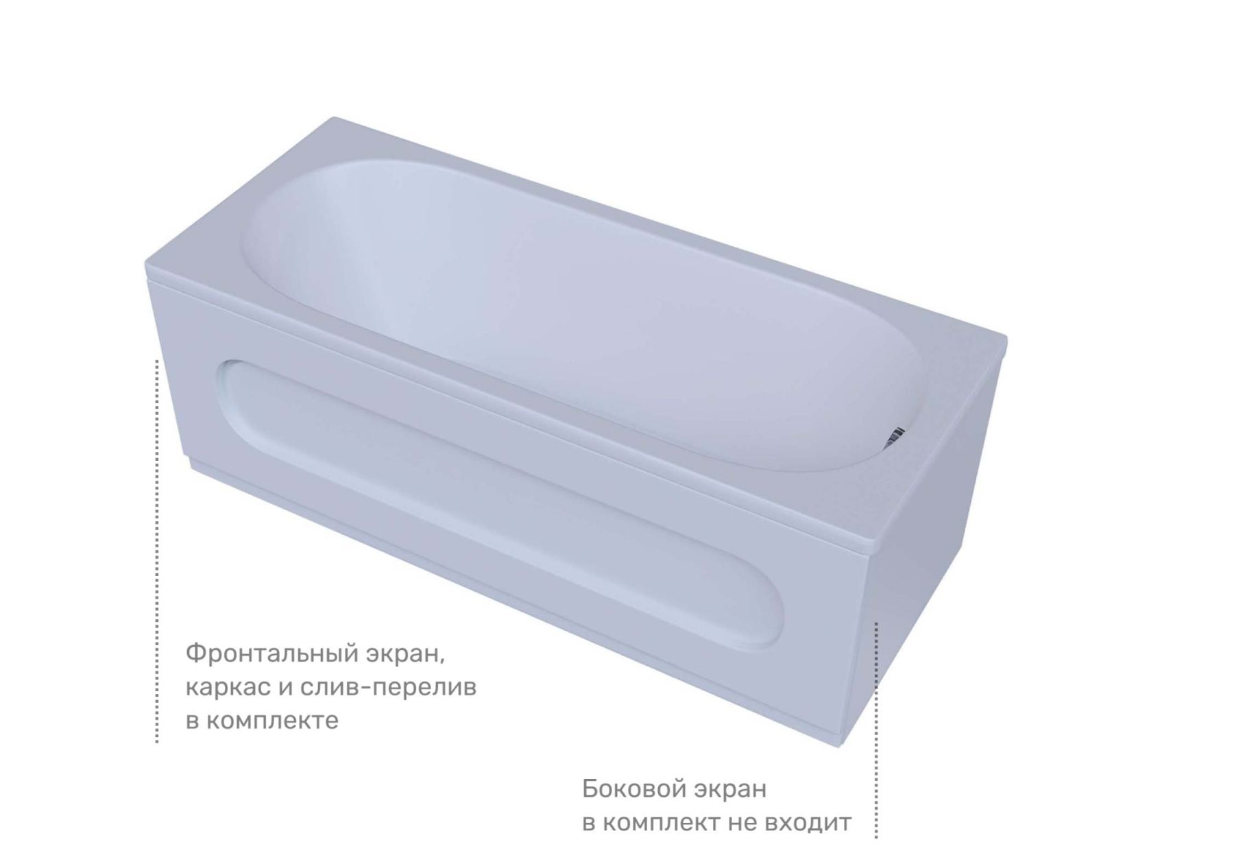 Акриловая ванна Aquatek Оберон OBR180-0000009 180х80 см с фронтальным экраном сборно-разборный сварной каркас купить