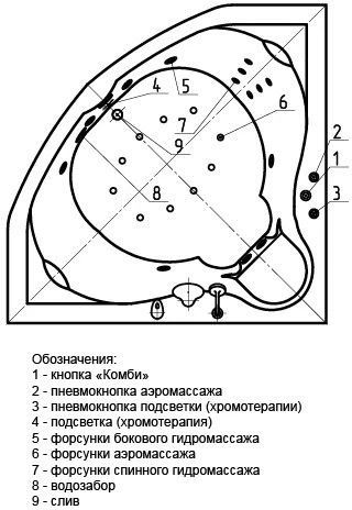 Система гидромассажа в стандартной комплектации включает в себя 12 форсунок спинного массажа.