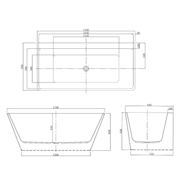 Акриловая ванна Azario OXFORD OXF17083 пристенная 1700х830х650 купить
