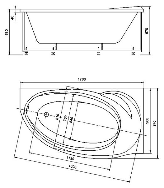 Акриловая ванна AZARIO PAOLINA AV.0071170 асимметричная 170*97 купить